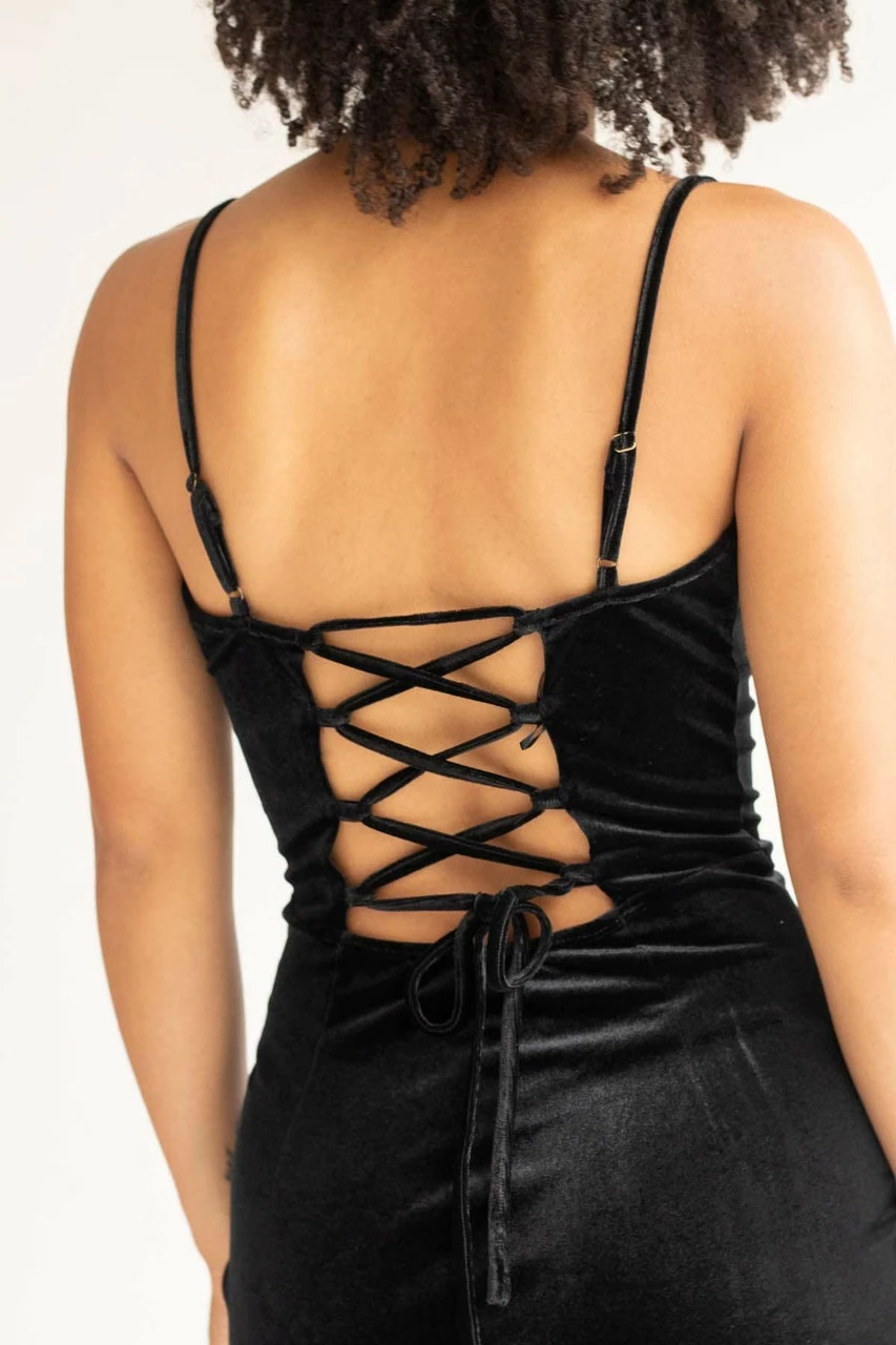 Be the first to review “Black Lace Up Back Velvet Mini Dress” Cancel reply