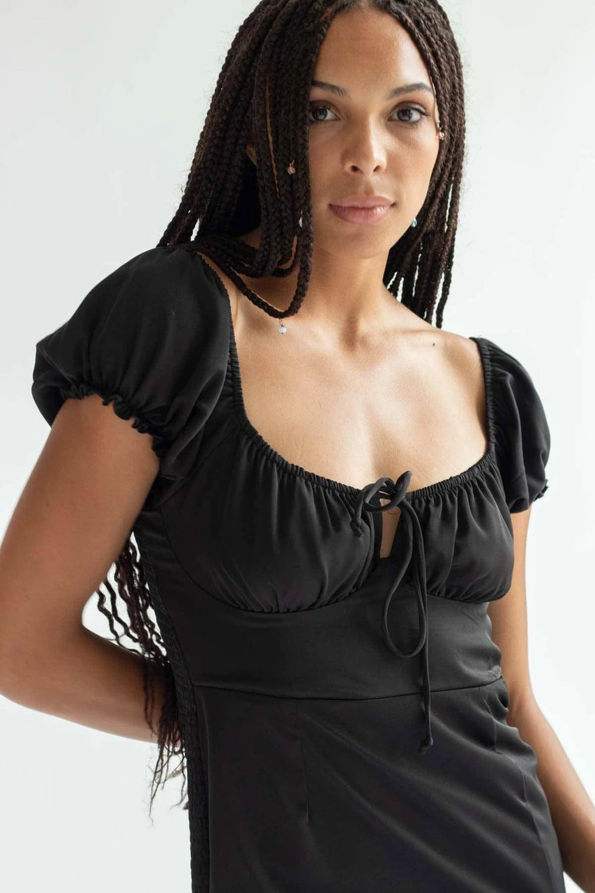 Be the first to review “Black Milkmaid Thigh Slit Mini Dress” Cancel reply