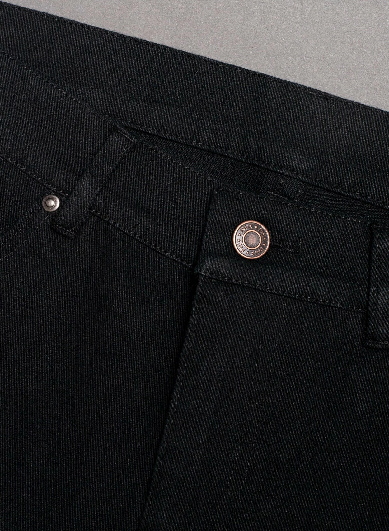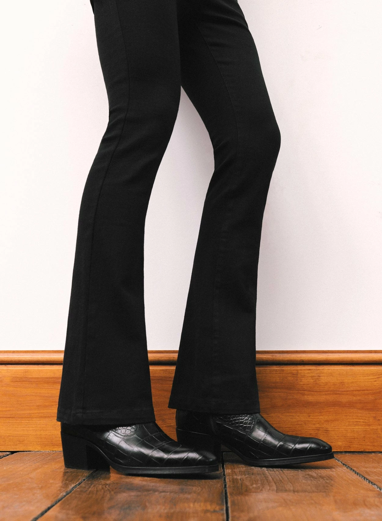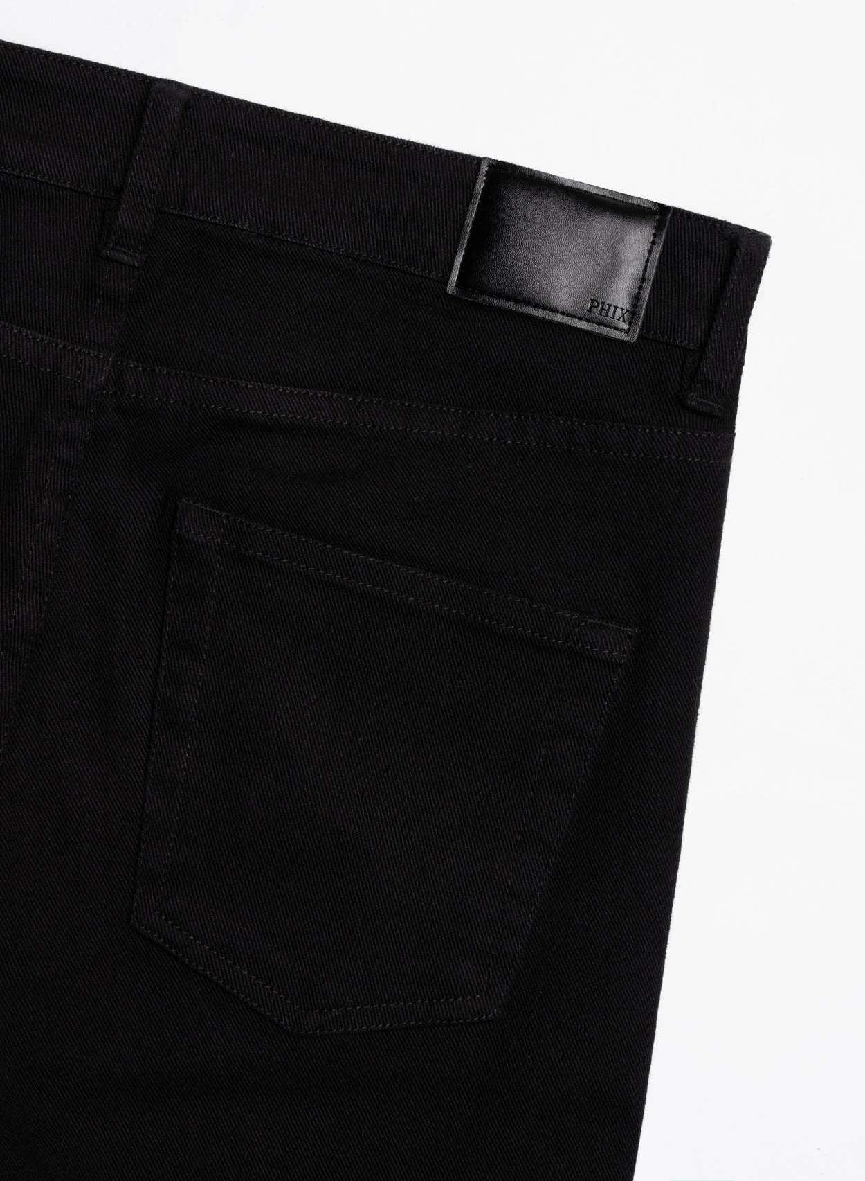 Our denim flared jeans combine meticulous design and cutting edge manufacturing with a structured, seventies-inspired silhouette. Crafted from high-grade cotton, this style is tailored for a slim fit to the upper leg and then tapers out to a flare at the ankle. Bespoke brass effect buttons embossed with the PHIX logo, and a high-quality YKK zipper, finish the look. Wear with heeled Chelsea boots for winter. Also available in Blue and White.