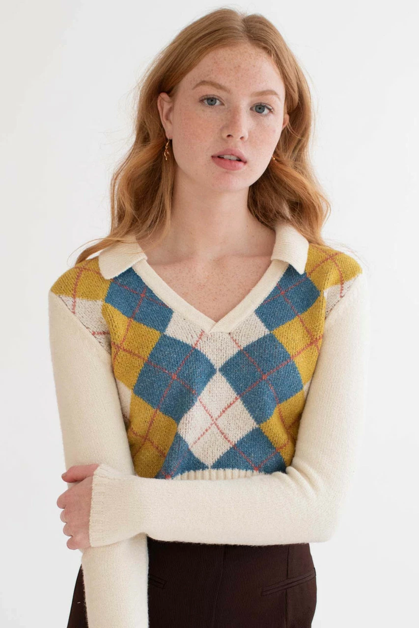 Be the first to review “Cream Argyle Collared Sweater” Cancel reply