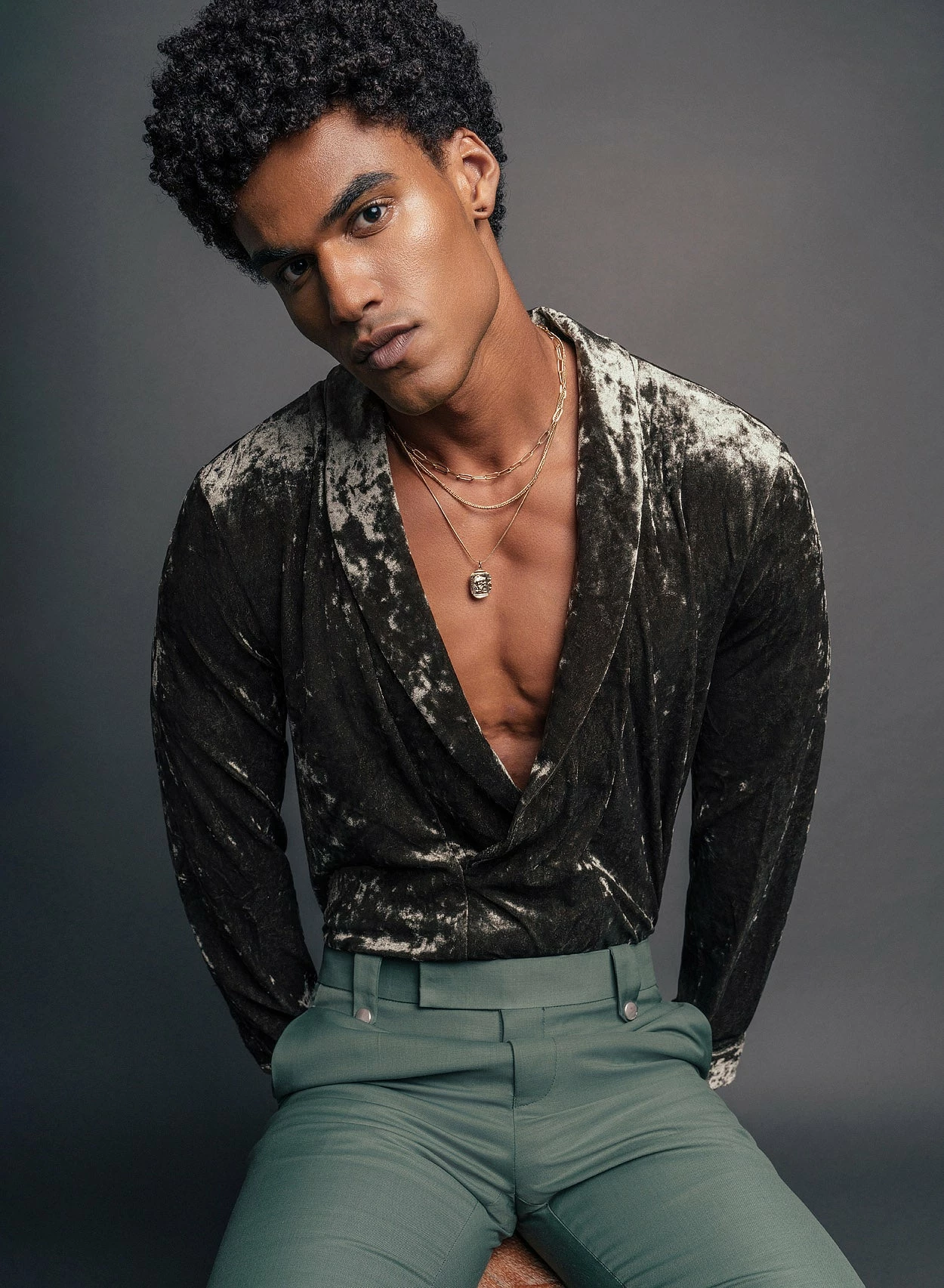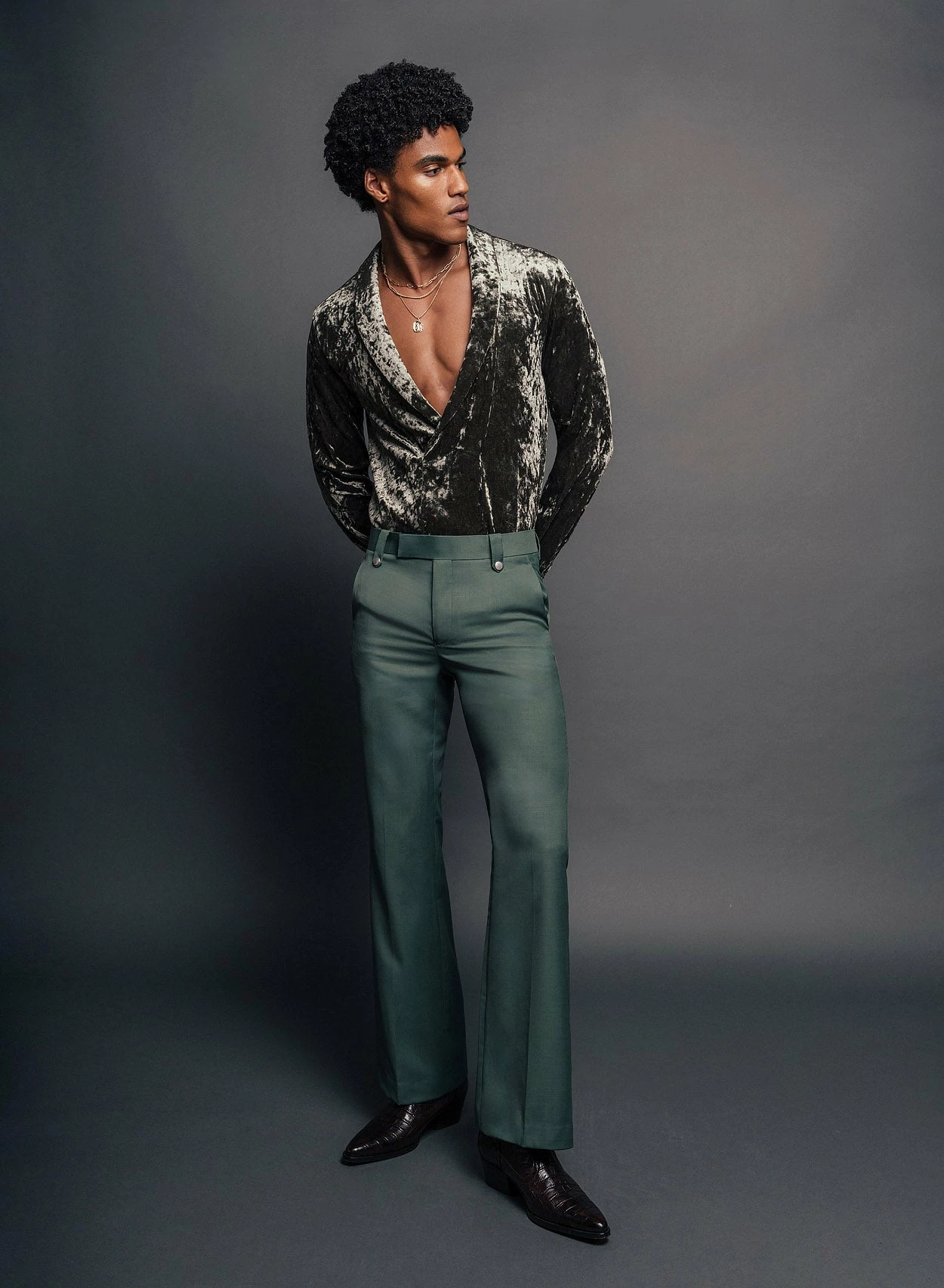 Crafted with meticulous attention to detail, this shirt exudes a plush crushed velvet texture that provides ultimate comfort and a flattering tailored fit. Soft to the touch and with a subtle sheen that catches the light, making it perfect for both formal and casual occasions. Complete with a bold open neck shawl collar, long sleeves and logo embossed buttons throughout. Also available in black or champagne gold.