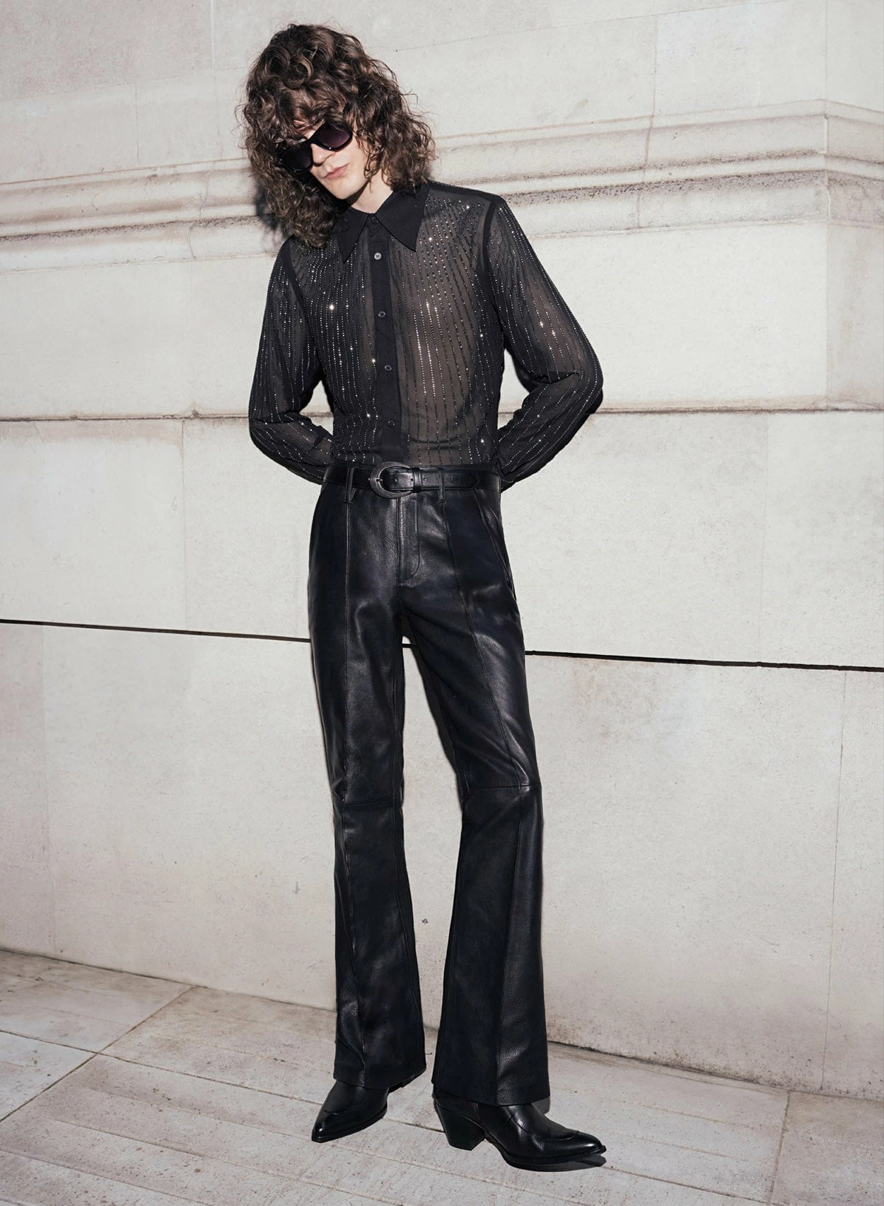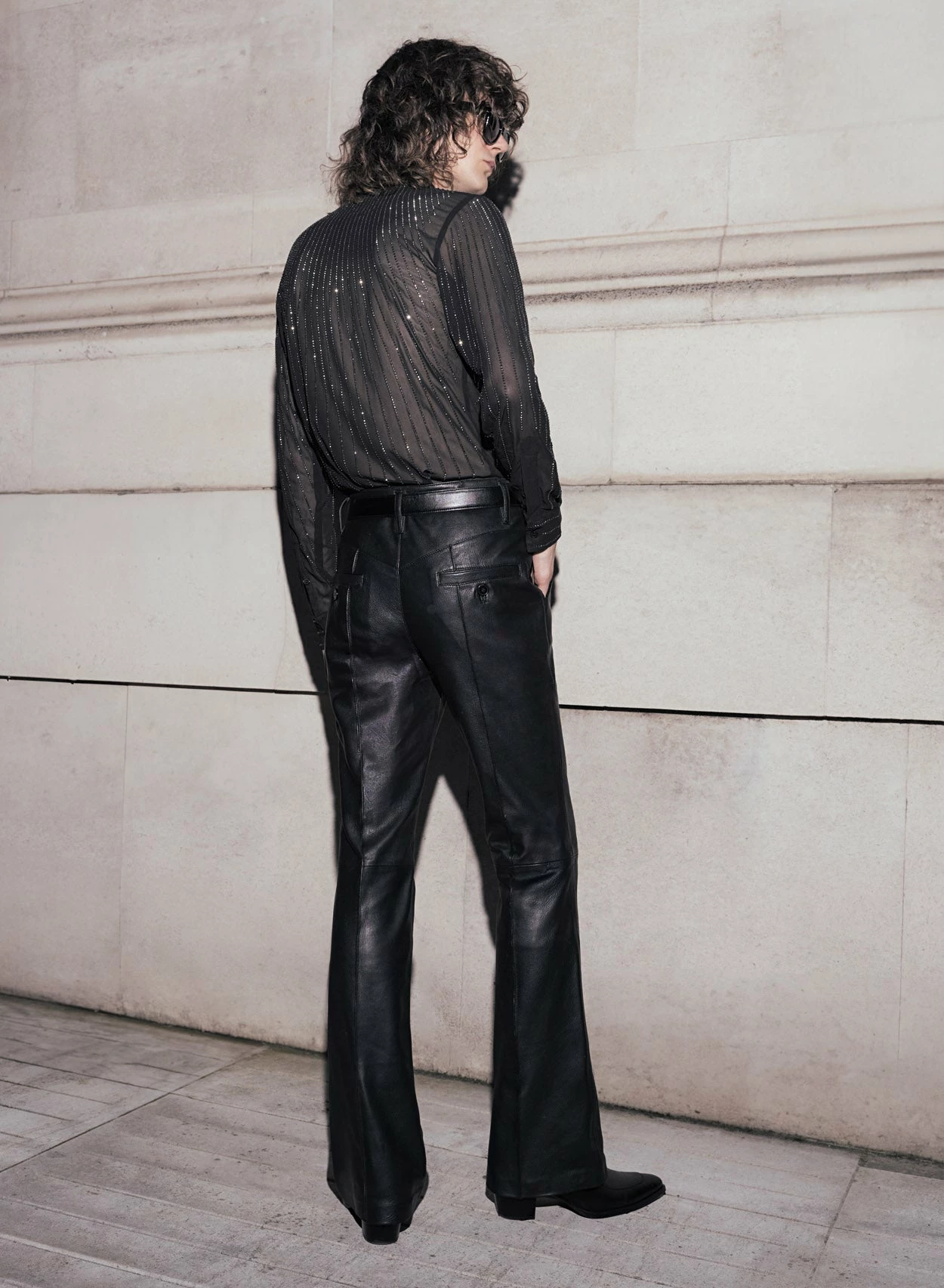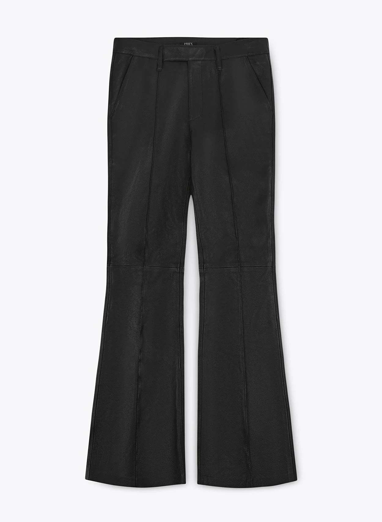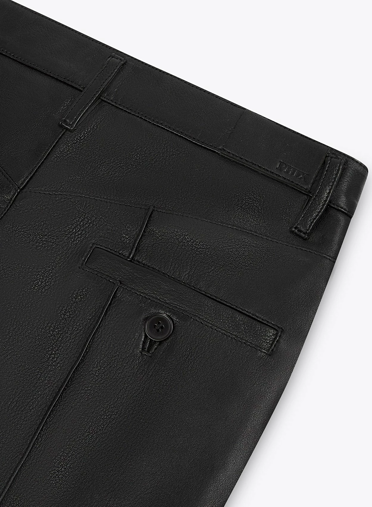 Expertly tailored from opulent black 100% genuine lambskin leather, these trousers boast a slim fitted silhouette with a high waistline, accentuated by exquisite pin tuck detailing. A subversive style staple, dress them up with bold tailoring or pair for a laid back look with a tee and boots.