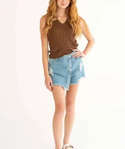 Be the first to review “Light Wash Distressed Denim Skort” Cancel reply