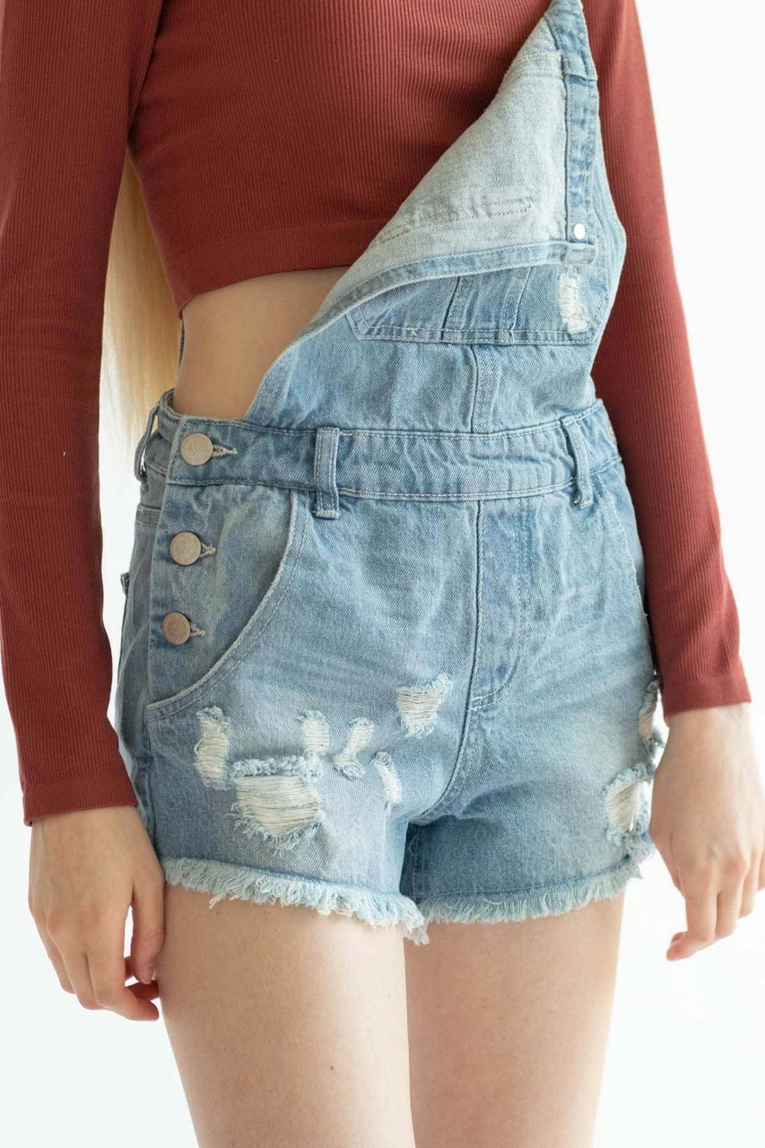 Be the first to review “Light Wash Distressed Overall Shorts” Cancel reply