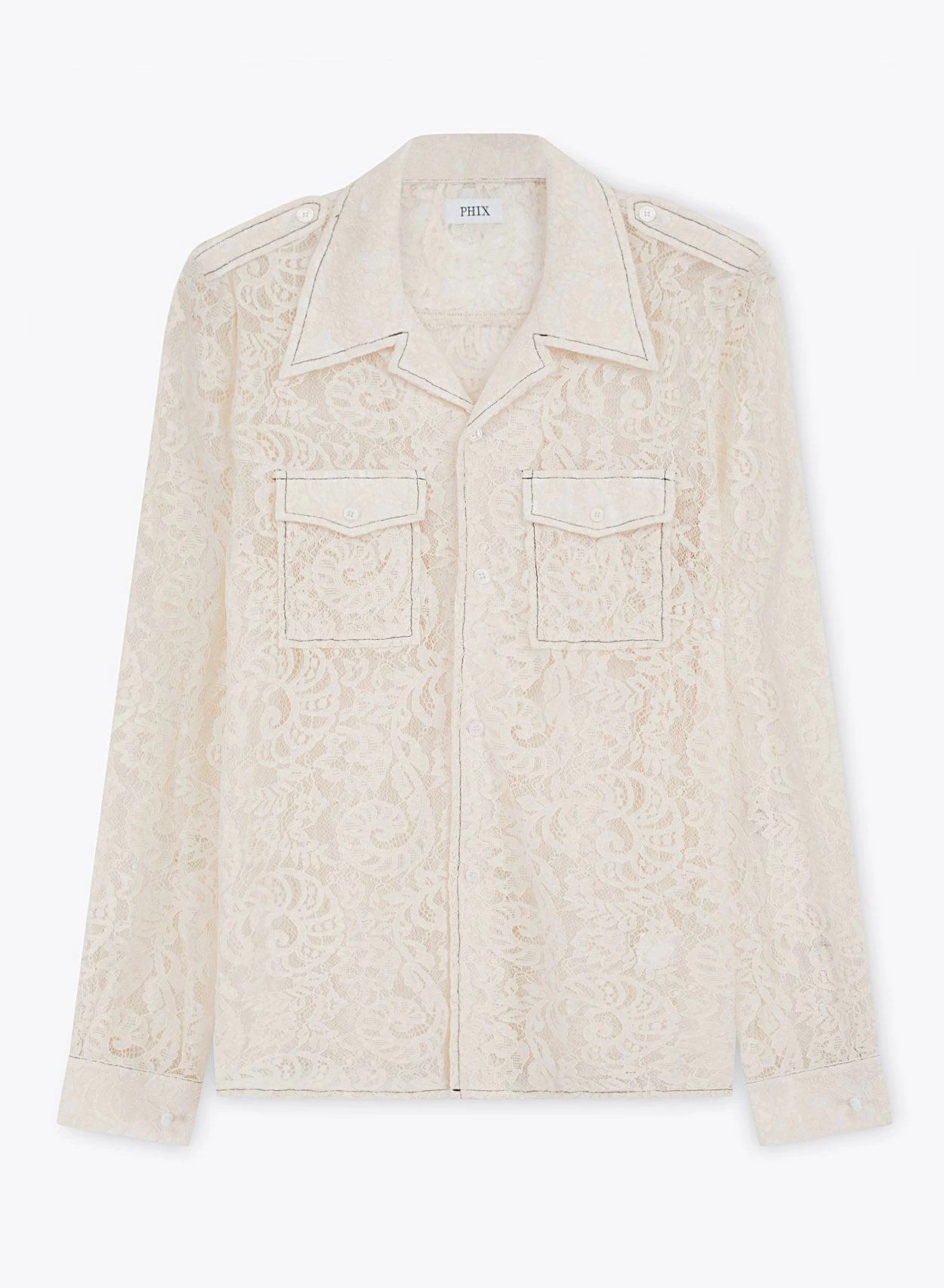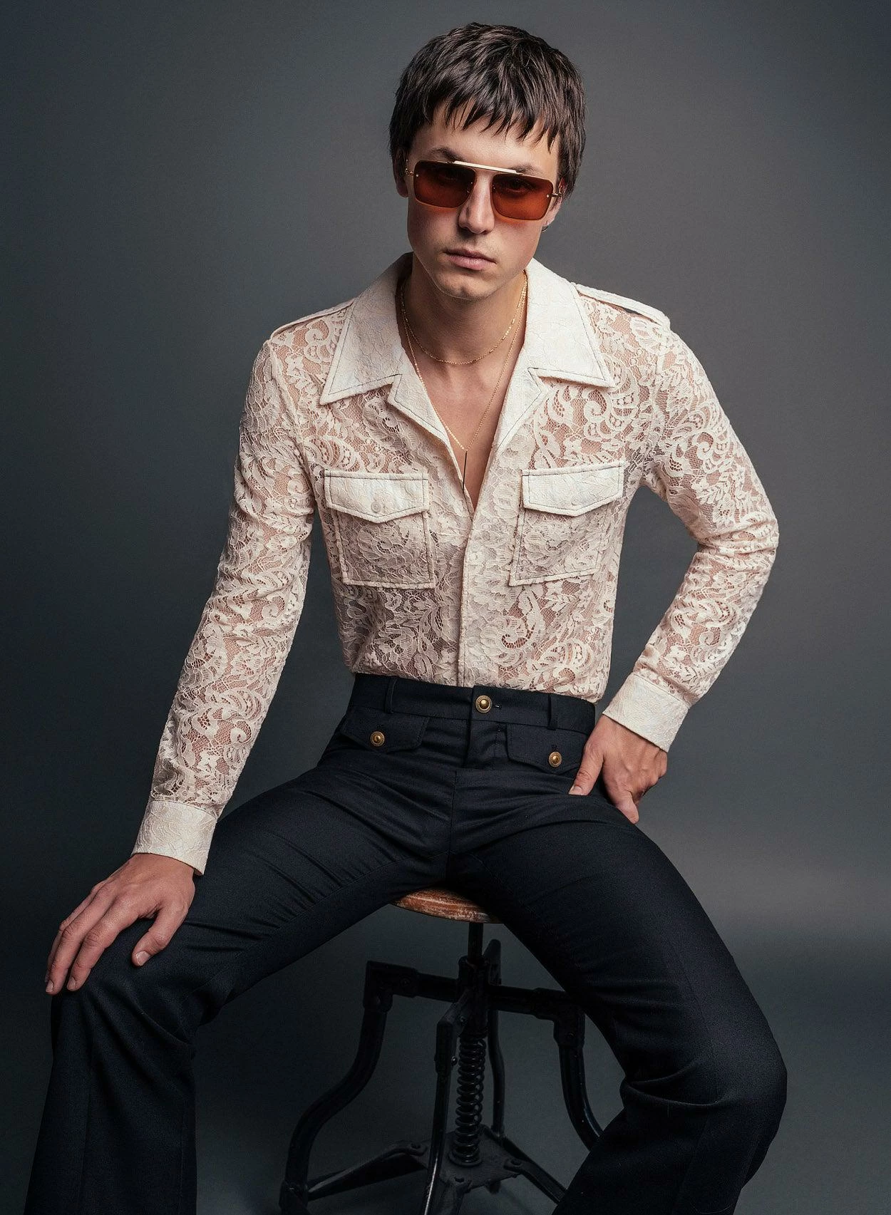 Crafted from semi-sheer lace with a vintage inspired paisley pattern and statement collar, this shirt pays homage to the iconic designs of the 70s. With long sleeves and pocket detailing, it strikes the perfect balance between sophistication and individuality. Cut for a tailored silhouette. Also available in black.
