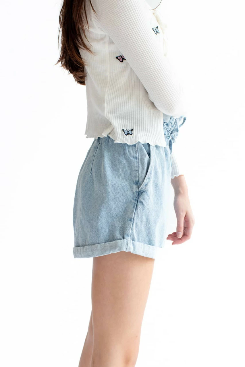 Be the first to review “Paper Bag Drawstring Waist Denim Shorts” Cancel reply
