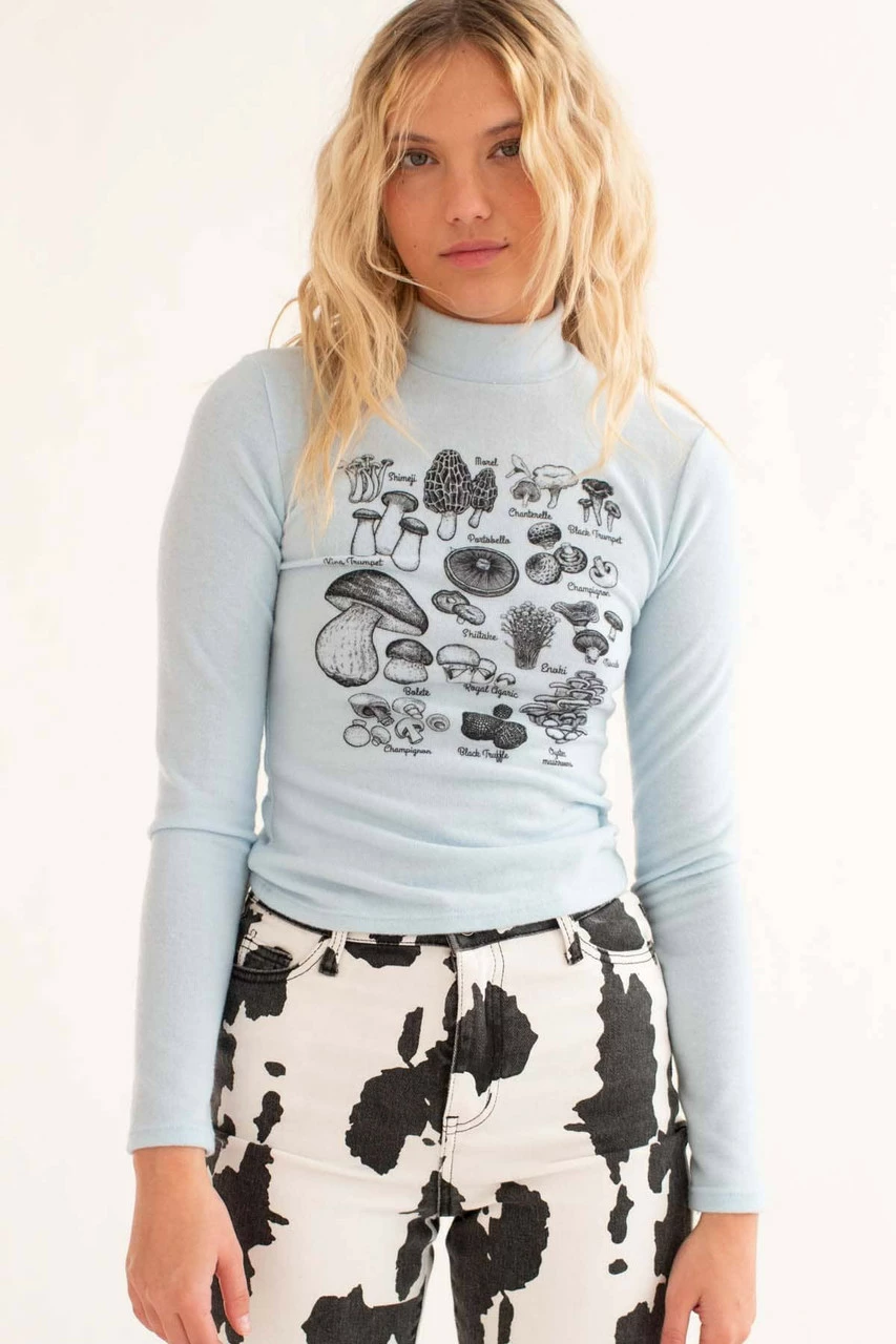 Be the first to review “Powder Blue Mushroom Fam Mock Neck Sweater” Cancel reply