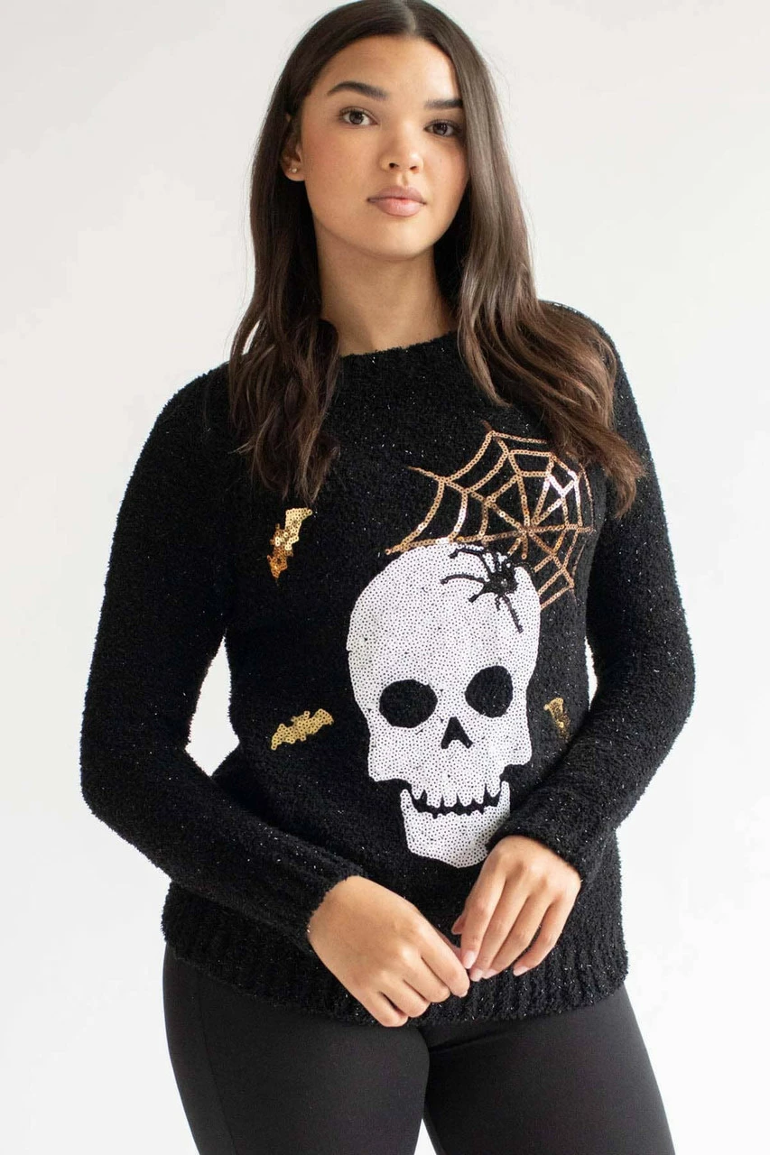 Be the first to review “Sequin Skull & Spider Chenille Sweater” Cancel reply