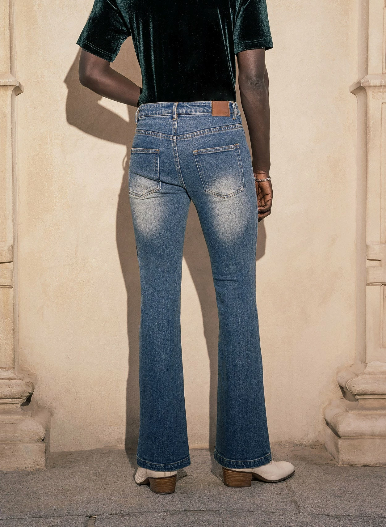 Introducing our latest denim cut, crafted from high-grade cotton denim and designed for the ultimate comfort and style. These dark blue jeans feature front pocket detailing and a stonewash distressed design which exudes a sense of effortless, worn-in cool. Vintage inspired and expertly tailored, these jeans boast a flare cut which tapers out at the ankle. Pair with sneakers and a relaxed fit short sleeve shirt for a 1970’s look.