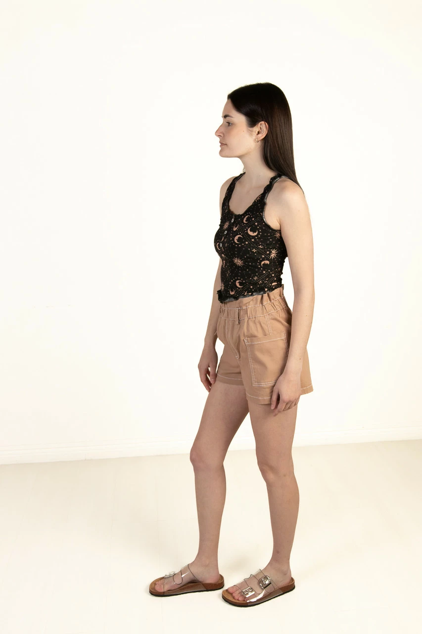 – Size small: Waist: 26″ Length: 14.5″ Hips: 39″